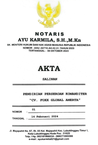 CV. FOXX GLOBAL AMERTA adalah badan usaha resmi yang bergerak di bidang penerbitan, pendidikan, serta penelitian dan pengembangan teknologi. Berdiri sejak Maret 2024, kami hadir sebagai mitra strategis bagi akademisi, penulis, peneliti, dan pelaku pendidikan yang ingin mengembangkan karya dan inovasi secara profesional, legal, dan berdaya saing.